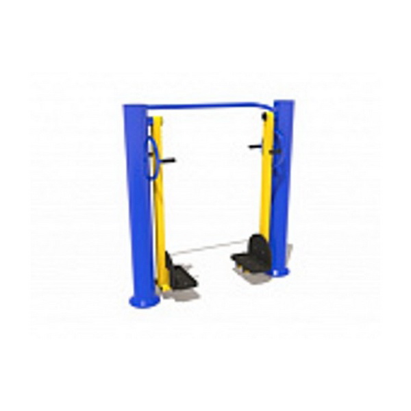 Назначение: Тренажер обеспечивает общую растяжку, укрепление мышц ног и тазобедренной области, поясницы. Несущие стойки тренажера выполнены из металлической трубы сечением Ø 110 мм, сверху стойки закрыты пластиковыми заглушками, бетонируется в землю на 0,6м. Ручки из металлической трубы сечением Ø 26 мм. Все шарнирные узлы имеют подшипники скольжения закрытого типа. Опоры для ног изготовлены из ударопрочного и морозостойкого пластика. Все жесткие соединения выполнены при помощи электросварки. Металлические элементы окрашены порошковыми красками. Крепежные элементы и места срезов труб защищены пластиковыми заглушками.