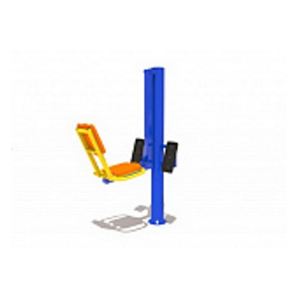 Назначение: Способствует укреплению мышц ног и коленных суставов. Несущая стойка тренажера выполнена из металлической трубы сечением Ø 110 мм, бетонируется в землю на 0,6м . Все шарнирные узлы имеют подшипники скольжения закрытого типа. Опоры для ног и сидение изготовлены из ударопрочного и морозостойкого пластика. Все жесткие соединения выполнены при помощи электросварки. Металлические элементы окрашены порошковыми красками. Крепежные элементы и места срезов труб защищены пластиковыми заглушками.