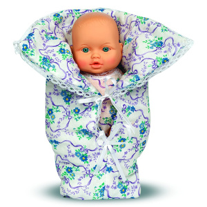Кукла-пупс в мягком голубом одеяле обязательно понравится и станет отличным подарком для девочки!