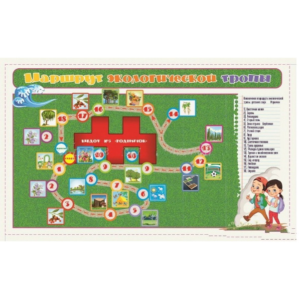 Баннер для экологической тропы - это наглядная карта на которой схематично нанесено здание детского сада и отмечено местоположение растений, произростающих на территории детского сада.