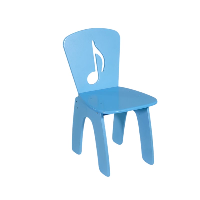 Необычный детский стул Нотка украсит игровую комнату или музыкальный зал. Модель изготавливается из фанеры и имеет небольшой вес. Оригинальная спинка с отверстием в виде нотки придает легкости изделию.