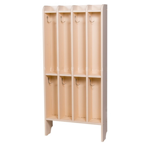 В каждом отделении металлический крючок. Очень компактное изделие — оптимальное использование пространства между окнами, батареями и т.д. Исполнение в цвете «Крем» зрительно увеличивает и делает светлее небольшие помещения умывальных комнат. Обязательно крепление к стене.