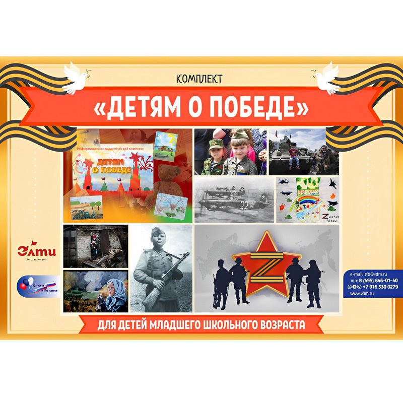 Первый модуль информационно-дидактического комплекта "Детям о Победе" рассчитан на детей старшего дошкольного возраста. Целью дошкольного модуля комплекта "Детям о Победе" является воспитание уважительного отношения к Родине, уважения и гордости за поступки героев Отечества и уважения к памяти павших бойцов, развитие потребности в служении и верности интересам страны через ознакомление с подвигом людей в Великой Отечественной войне.