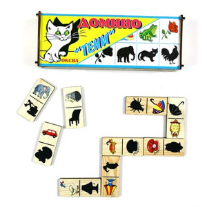 "Домино Теней" учит ребенка соотносить реальное изображения предмета с его теневым в игровой форме домино.