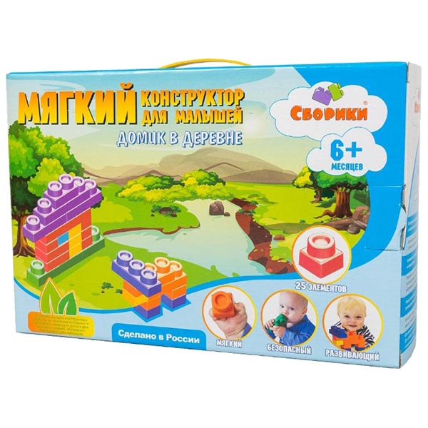 Конструктор «Домик в деревне» предназначен для детей от 6 месяцев, поэтому при его разработке основное внимание уделили удобству использования и безопасности. Его детали изготовлены из термоэластопласта, обладающего уникальными свойствами – он легкий, не токсичный, не впитывает воду и пыль, его можно мыть. Элементы, выполненные из ТЭП, отлично держат форму, их можно мять и скручивать, на них можно наступать и падать.