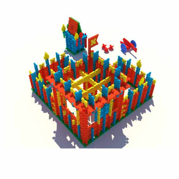 «Крепость» представляет собой набор из более 300-х деталей, что дает свободу мысли при конструировании. Можно создавать лабиринты, туннели, отдельно стоящие элементы и конструкции.