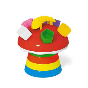 Навершие пирамидки сделано в виде шляпки гриба. Пирамидка научит группировать предметы. Изделие выполнено из безопасного, нетоксичного и износостойкого материала. В шляпку вставляются формочки в виде геометрических фигур.