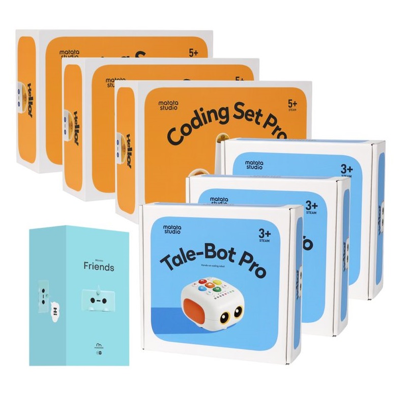 Групповой комплект предназначен для группы из 6-12 детей от 3 лет для занятий по развитию пространственного, логического, критического, математического мышления без применения компьютера и мобильных устройств. В составе группового комплекта два типа разноуровневых по сложности программируемых безэкранных роботов: Matatalab Coding Set Pro и Matatalab Tale-Bot Pro. Комплект совместим с Lego, адаптирован для использования в группе из 6-12 детей.