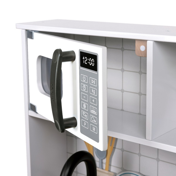 На полках за закрытыми дверцами удобно хранить посудку, поварскую утварь и любые другие игрушки и принадлежности. Маленькая хозяюшка будет с удовольствием готовить вкусную "еду", возиться с кукольными обедами и устраивать званые ужины для мишек и куколок.