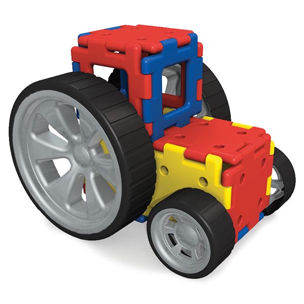 Используя этот набор, дети смогут построить большое количество разнообразных движущихся моделей (автомобиль, трактор, автобус и т.д.), которые продемонстрируют работу простейшего механизма, помогут развивать координацию и осваивать понятия движения и скорости.