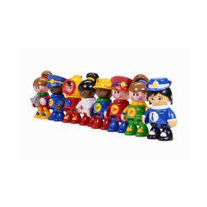 В наборе 8 фигурок разных профессий, национальностей и пола. Все фигурки имеют высоту около 120 мм, движущиеся руки, ноги и голову, издающие треск при вращении, кнопки-пищалки на животе.