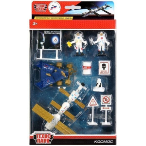 В набор входят несколько видов космических устройств, 2 космонавта и аксессуары для игры в космодром