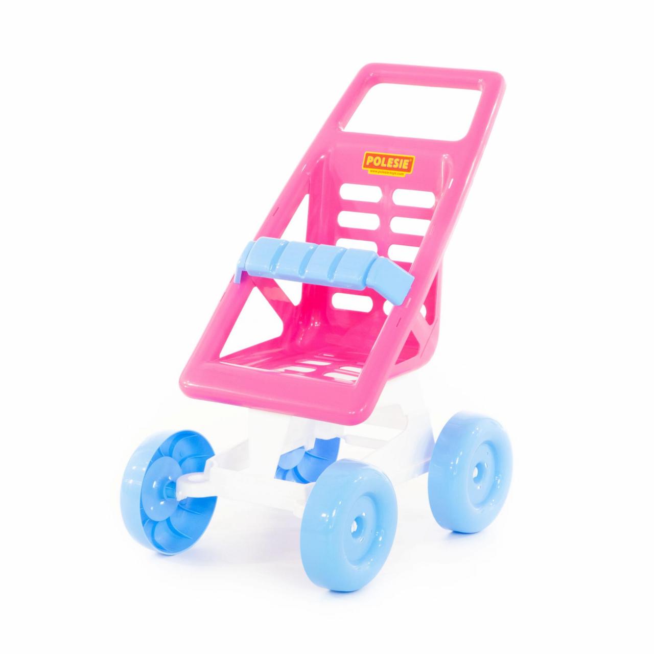 Коляска для кукол изготовлена из прочного пластика. Она очень яркая и с необычным дизайном.