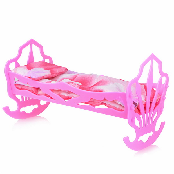 Игрушка Кровать кукольная – пластмассовая игрушка для кукол размером до 15 см., с комплектом белья (матрас, подушка, одеяло).
