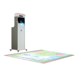 Комплекс представляет из себя интерактивный пол. За счет конструкции тумбы с колесиками, где находится проектор, системный блок и датчик движения, комплекс можно перемещать. Конструкция мобильной тумбы (проектор, датчик движения, компьютер).