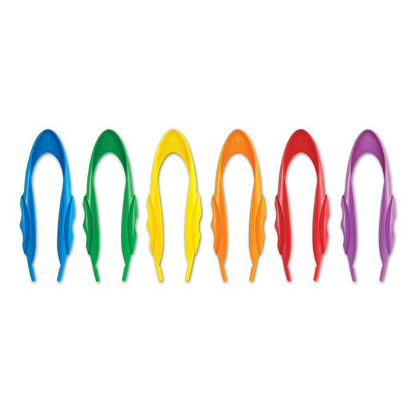В наборе 12 разноцветных пластиковых пинцетов для научно-исследовательской и экспериментальной деятельности дошкольников.