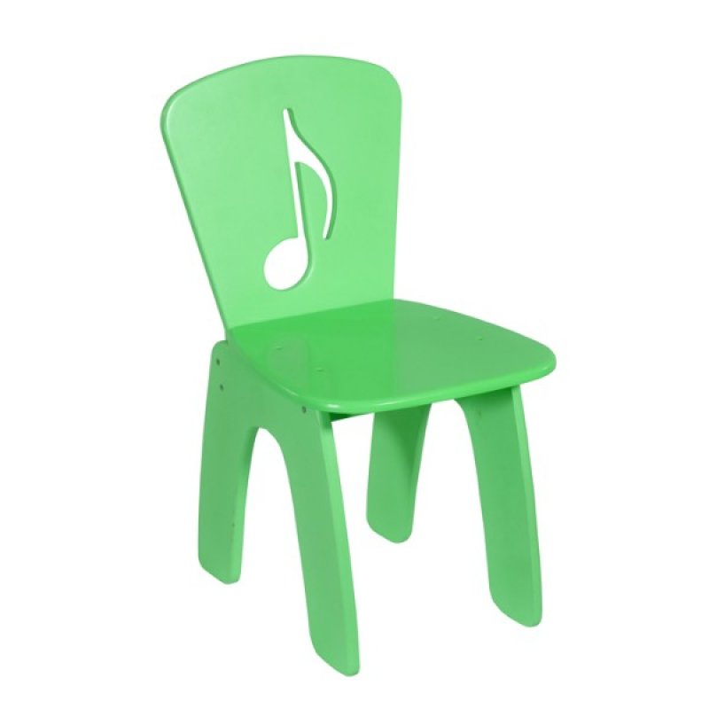 Необычный детский стул Нотка украсит игровую комнату или музыкальный зал. Модель изготавливается из фанеры и имеет небольшой вес. Оригинальная спинка с отверстием в виде нотки придает легкости изделию.