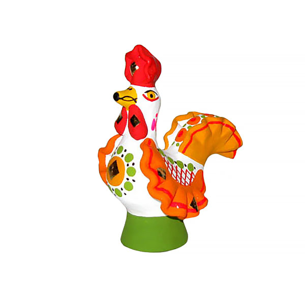 Дымковская игрушка «Петушок» представляет один из самых ярких народных промыслов нашей страны. Возник он 400 лет назад и до сих пор остается популярным, интересным и самобытным. Технология изготовления игрушки поэтапная: лепка, сушка и обжиг, побелка и роспись. Поверх росписи поделки дополнительно украшаются в определенных местах ромбиками сусального золота, от чего игрушка становится еще более нарядной. Под руководством педагога, детишки вполне могут попробовать вылепить такого петушка из глины, а по готовности изделия, украсить его росписью.