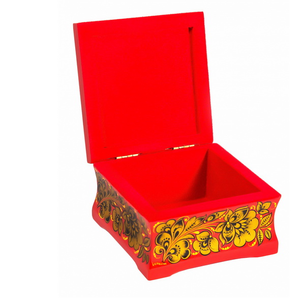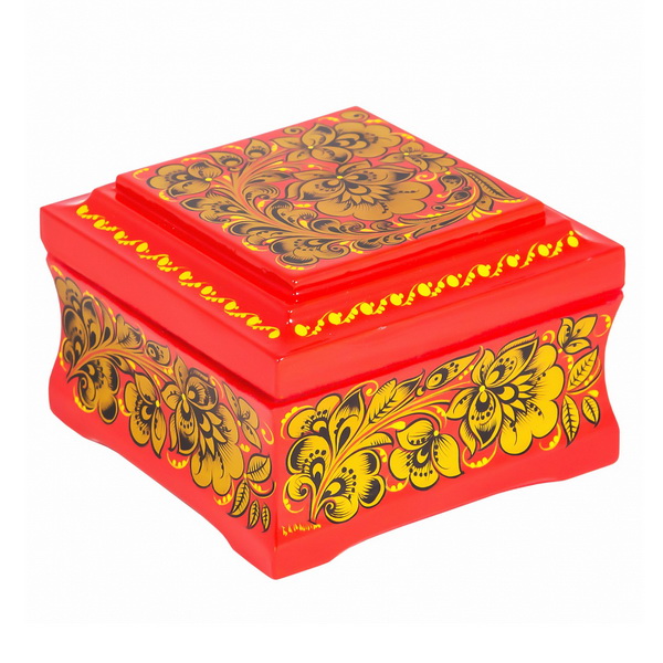 Шкатулка. Размер изделия 115х115х80 мм. Изготовлена в полном соответствии с традиционной хохломской технологией золочения из древесных материалов. Имеет авторскую роспись в технике фонового письма и внутреннюю флокированную поверхность. Роспись "Торжество".