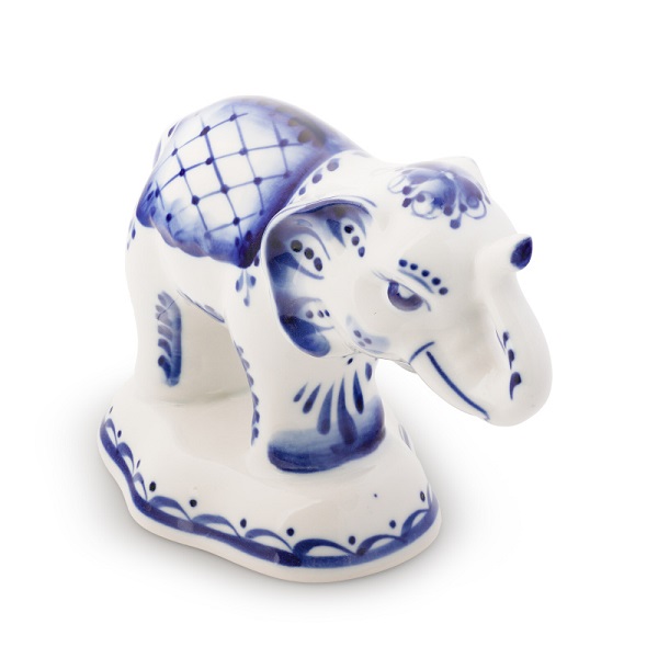 Очень красивый фарфоровый слон с росписью Гжель познакомит детей с народными промыслами.