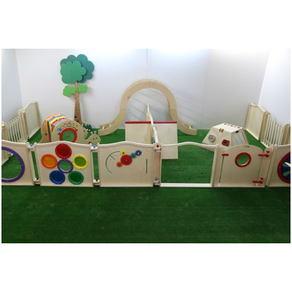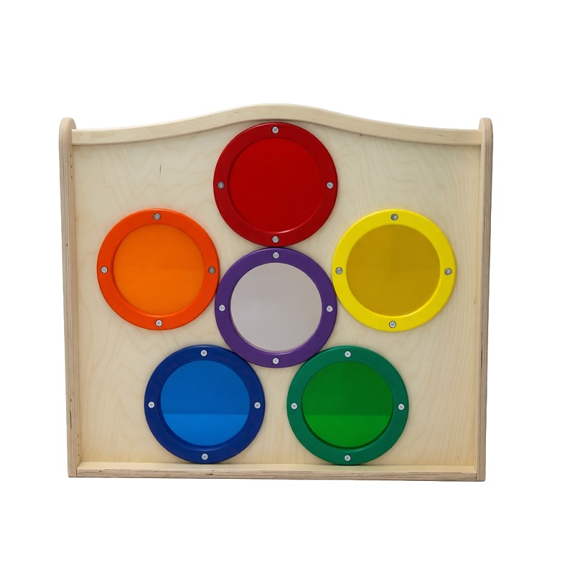 Напольная панель для игровых зон предназначена для создания функционального развивающего пространства. На фронтальной части конструкции располагаются элементы из разноцветного оргстекла, напоминающие калейдоскопический рисунок. Модель отлично подходит для изучения цветов.