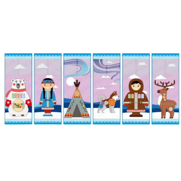 Шесть панелей для оформления стен, которые собираются в единую композицию — в тематике традиций и быта народов Севера.