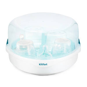 Стерилизатор для СВЧ стерилизует предметы горячим паром. Для нагрева используется СВЧ-печь, мощностью от 750 до 1800 Вт и объёмом от 20 л. При закрытой крышке стерилизованные приборы остаются стерильными до 24 часов. В стерилизаторе можно стерилизовать бутылочки для детского питания, соски, крышки, детали молокоотсосов и другие детские принадлежности. Одновременно можно стерилизовать 5 бутылочек высотой до 15,5 см. Стерилизатор оснащён ненагревающимися защёлками, которые фиксирует крышку. Это гарантирует безопасное извлечение стерилизатора из СВЧ-печи и предотвращает риск получения ожога. В комплекте есть щипцы для безопасного извлечения горячих предметов. Благодаря съёмной корзине удобно укладывать предметы для стерилизации.