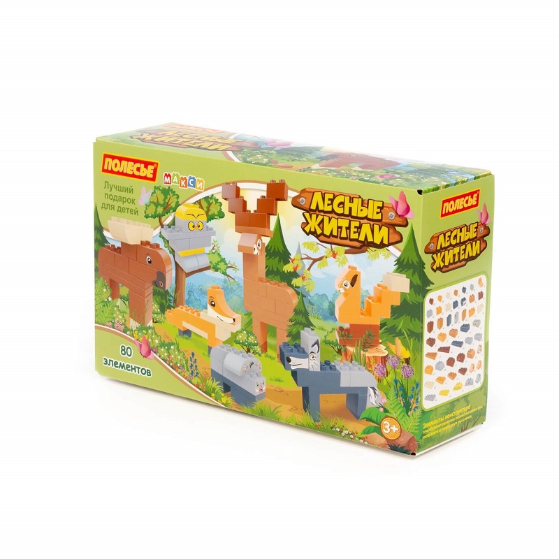 Конструктор "Макси" - "Лесные жители" познакомит малыша с увлекательным миром диких животных, позволяя придумывать различные игровые сценарии. В набор входит 80 элементов конструктора.