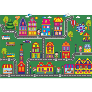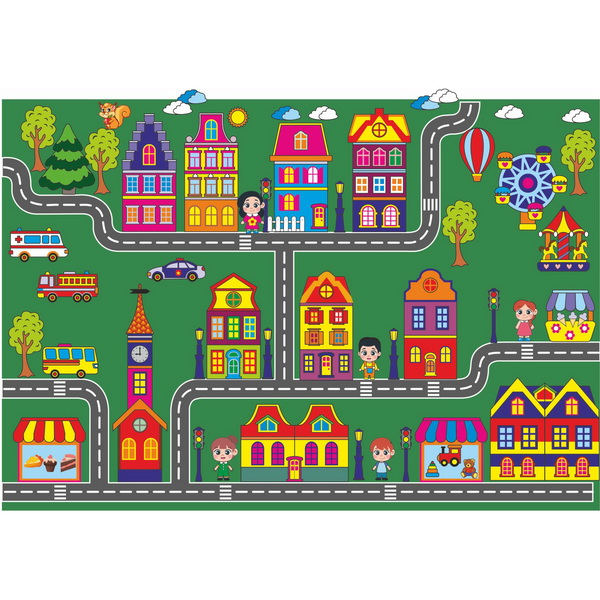 Играя, дети строят свой город, свои варианты домов, ведь цветные фасады и крыши можно использовать в разных вариантах. Дорога так же имеет большое количество элементов, что позволяет строить разные маршруты улиц. С помощью элементов можно узнать геометрические формы. Каждый элемент имеет липучку. Благодаря этому игрушку легко прикрепить и оторвать от коврика. Игра способствует развитию воображения, мышления, речи.