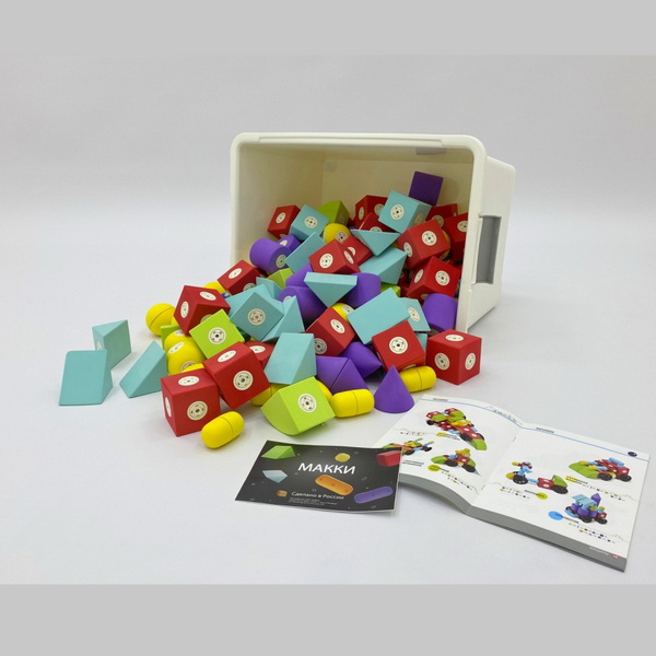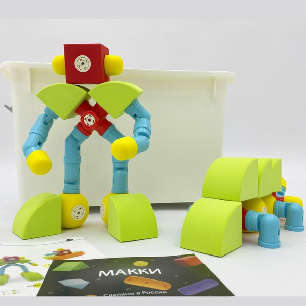 Конструктор «МАККИ Гигант» — набор цветных мягких магнитных деталей (крупных геометрических фигур с магнитными креплениями), рассчитанный на целую группу ДС, так как в комплекте 240 деталей.