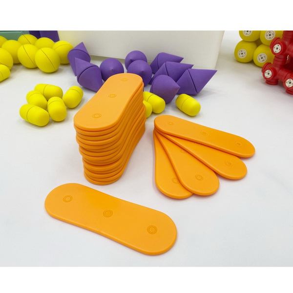 Детали конструктора окрашены в приятные однотонные цвета, со звуковым эффектом погремушки. Каждая из деталей имеет от 1 до 9 вариантов магнитной стыковки, что практически не ограничивает ребенка в конструировании. Простые детали отлично подходят для детей младшей группы ДОУ, детей с ОВЗ и РАС. Более сложные по форме и креплениям детали предназначены для детей средней и старшей группы.