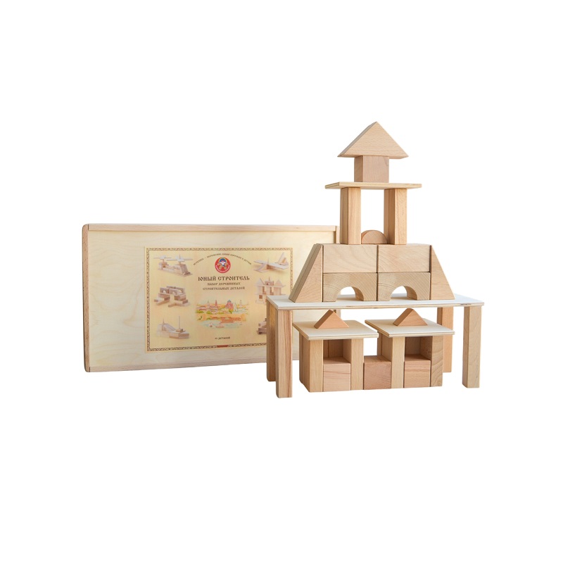 Строительный набор по методике "Дом радости" Крыловой - Агаповой. В нём 95 деталей разнообразных геометрических форм плюс перекрытия. Конструктор выполнен из прочного и долговечного дерева, бука. Отшлифован вручную. Без покрытия лаком и проч. У всех деталей, включая перекрытия, отсутствуют острые углы. Имеется сертификат качества.