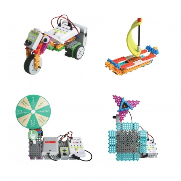 Конструктор позволит собрать следующие модели: мельница, блендер, карусель, гоночный мотоцикл, каток, автопогрузчик, поезд и многое другое – всего 27 моделей.