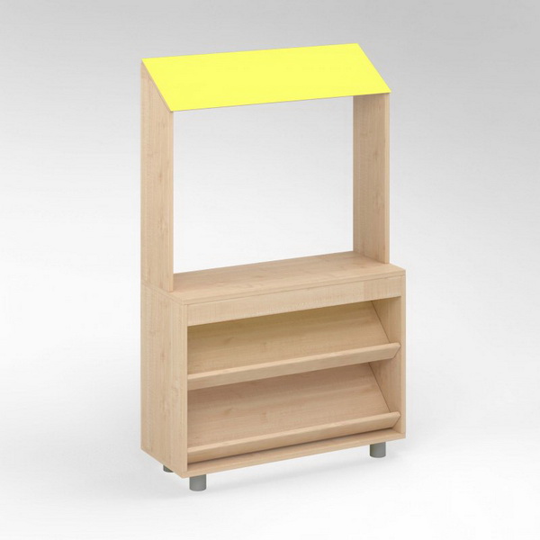 Изделие абсолютно безопасно – крепежные элементы конструкции утоплены, углы закруглены, конструкция устойчива. В "магазине" есть несколько полочек для товаров – ребятишки смогут разложить на них кубики, кукол, книжки и играть с удовольствием.