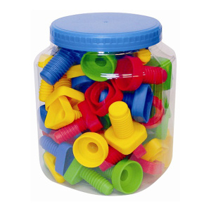 Дети должны накрутить все гаечки на винтики. Во время игры развиваются глазомер и мелкая моторика.