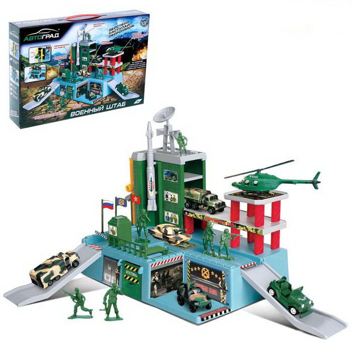 Парковка «Военный штаб» — это яркий игровой набор, с которым мальчишка создаст свою собственную армию. Здесь есть всё необходимое для разработки и проведения секретной операции: вертолёт, машина и 4 фигурки соладт.