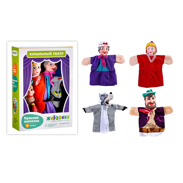 Набор кукол-перчаток для постановки детского спектакля по мотивам известной сказки "Красная шапочка". Все персонажи выполнены в ярких костюмах.