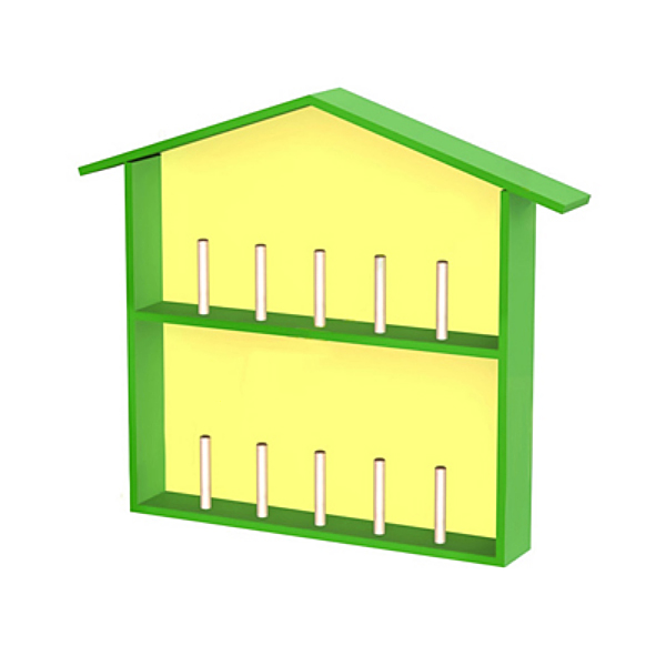 Двухъярусный стенд в виде домика для хранения 10-ти перчаточных кукол. Цвет на выбор заказчика. Возможно изготовление с фотопечатью.